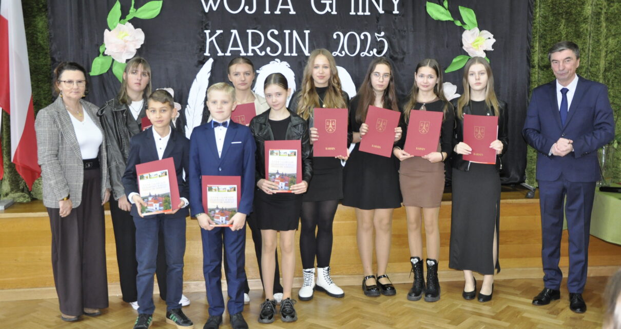 8 listopada w wypełnionym do ostatniego miejsca Domu Kultury w Karsinie, wójt Roman Brunke wręczył stypendia uczniom szkół podstawowych i studentom za wyniki w nauce i aktywność, w tym sportową. W tym roku zatwierdzono ich rekordową ilość, a kwota na ten cel przekroczyła 100 tys. zł.