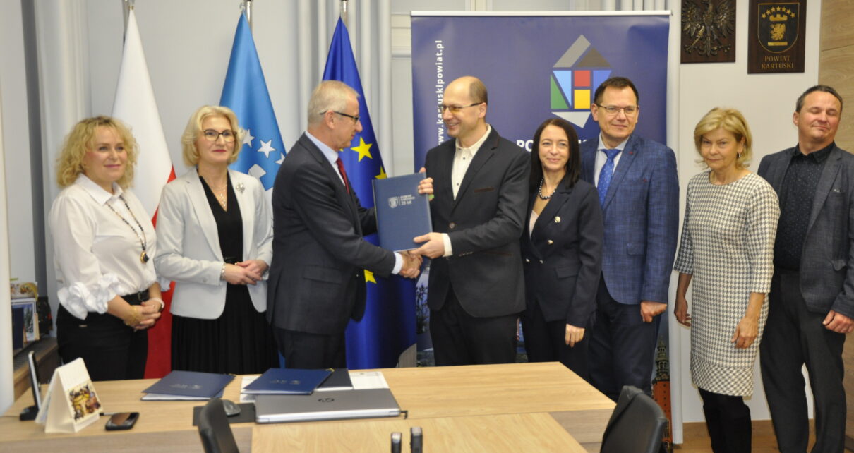 Wczoraj w starostwie kartuskim została podpisana umowa na wykonanie dobudowy kolejne hali sportowej wraz z łącznikiem dla zespołu szkół powiatowych na „Wzgórzu”. Będzie to już piąta hala w ostatnich latach budowana przy placówkach oświatowych powiatu. Wykonawca ma 14 miesięcy na jej realizację.
