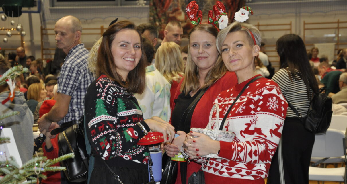 Tego dnia salę sportową rozjaśniły świąteczne dekoracje. Zwracała uwagę ogromna czerwona kokarda – w tym roku bardzo modna. Środek pomieszczenia zajął ogromny przystrojony lampkami świerk. Za sprawą dekoracji zapanowała w niej iście świąteczna atmosfera. Pomocne w tym były stoiska wypełnione stroikami, aniołkami, bałwankami czy choinkami.