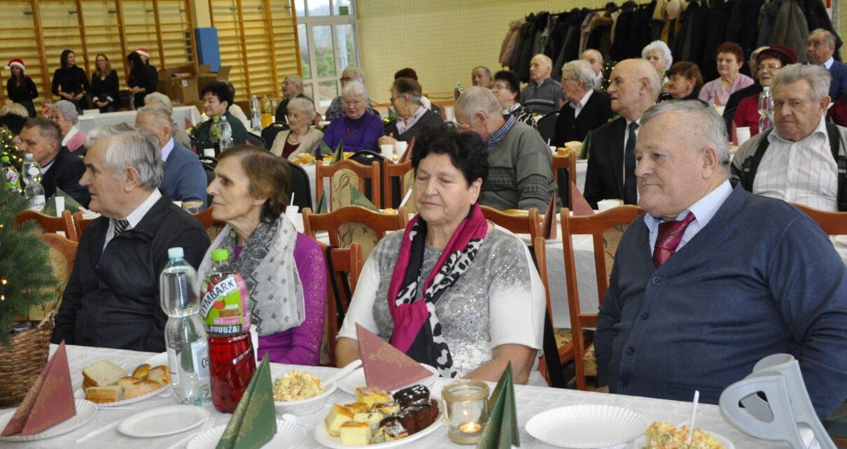 W bajeczno-świąteczną podróż zaprosili seniorów uczniowie klas II, pod kierownictwem Mirosławy Miłosz. Czego w niej nie było? Zaczęli od mini-sztuki o tematyce oczywiście Bożonarodzeniowej. Później były śpiewy, tańce i żartobliwe opowieści. Nie zabrakło akcentów regionalnych. Widać, że dzieci przyłożyły się do swoich ról. Występy były nagradzane gromkimi oklaskami. To był chyba najpiękniejszy prezent, który seniorzy otrzymali tego dnia. Ale trzeba też pamiętać, że paczki świąteczne przygotowali dla nich również organizatorzy.