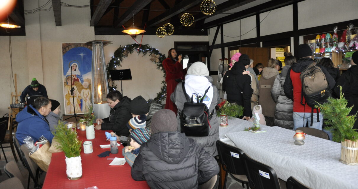 Pod sceną jak na wigilię przystało, na ogromnym ruszcie smażyły się ryby, a w pomieszczeniach sceny na chętnych czekał barszcz, pierogi i kucha.