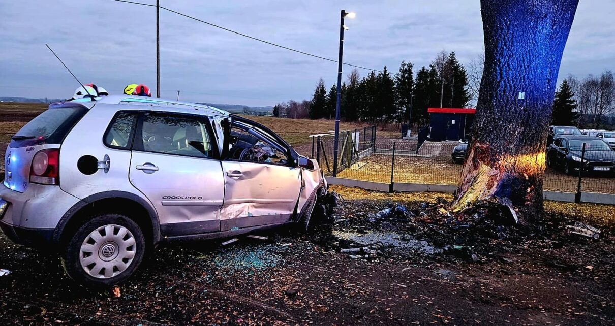 Dziś tuż przed godz. 6 dyżurny Komendy PSP w Kościerzynie otrzymał informację o wypadku na DW 214 w okolicach Starej Kiszewy. Z niewyjaśnionych przyczyn auto uderzyło w potężne przydrożne drzewo. Okazało się, że wewnątrz znajdowała się jedna zakleszczona osoba.