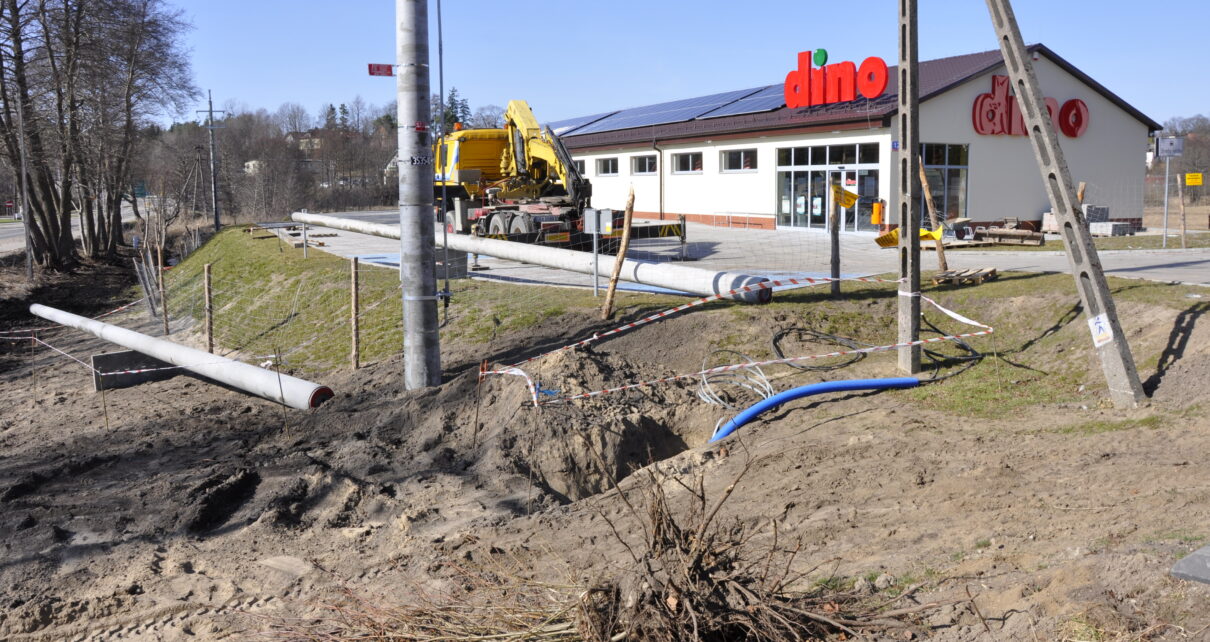 Jak usłyszeliśmy w ubiegłym tygodniu od wójta gminy Pawła Trzebiatowskiego, w ostatnich dniach na działce Dino trwały prace związane z budową przyłącza. Montowane były słupy trakcji.